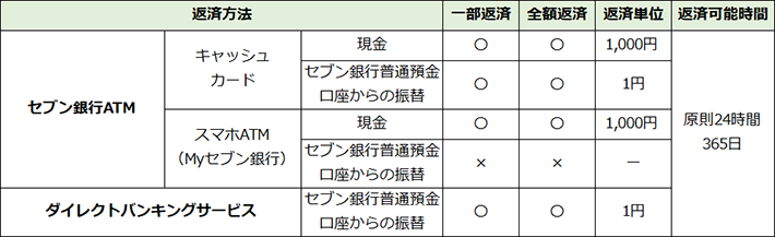 ※スマホATM(Myセブン銀行)からの一部返済・全額返済につきましては、現金でのみの返済となります。