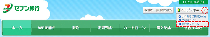こちらからパソコン用のダイレクトバンキングサービスにログオンのうえ、ホーム画面右上の「ヘルプ・Q&A>問合せフォーム」からお問合せください。