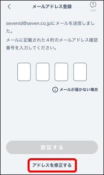 ・Myセブン銀行(スマートフォンアプリ)からの振込み:確認番号入力画面で「アドレスを修正する」を押下し、正しいメールアドレスを入力してください。